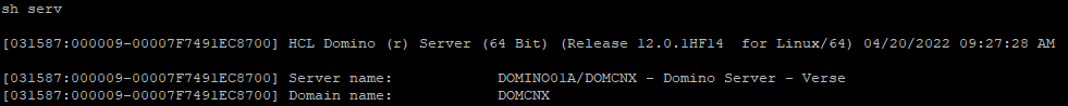 Nous allons vérifier que le HF14 soit bien installé sur le serveur HCL Domino, nous allons redémarrer le serveur :