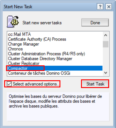 • A partir de l’outil de démarrage de tâche de Domino Administrator